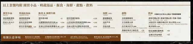 PS:另加10%服務費,每人低消$500,內用限時兩小時,開瓶費$200/瓶