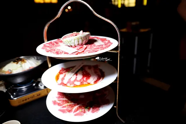 主菜肉品的部份有三份牛肉、兩份豬肉及一份雞肉。以三層塔盛裝肉品,相當具質感也不佔空間。