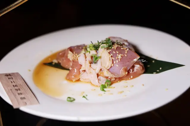 夏瑞克熟成里肌芯以麻油跟椒鹽調味,在再上白芝麻增添香氣。來自雲林的夏瑞克里肌芯,口感、肉質及油花分布上,表現得很不錯!