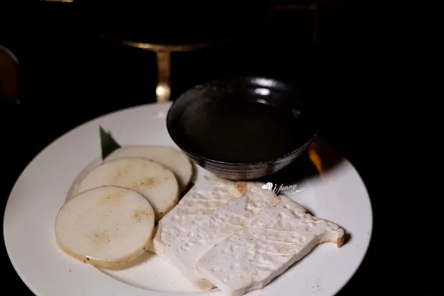 比較特別的部份是附上了一碗高湯,先將杏鮑菇放至高湯中浸泡一會兒。