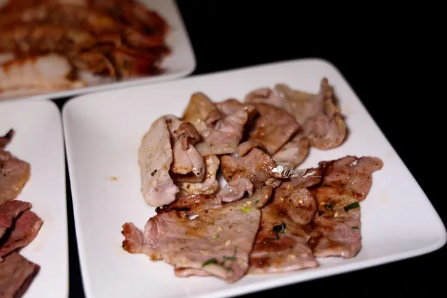 由於我們又要烤肉又要拍照,加上套餐的品項真的很多,我們的進度明顯在限時2小時內是落後的,因此貼心的服務人員就提出要幫我們烤的服務,真的太開心了!