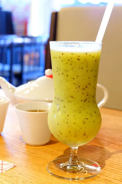另一位吃飽了只是單純來抬槓的友人不想喝茶,單點了奇異果汁