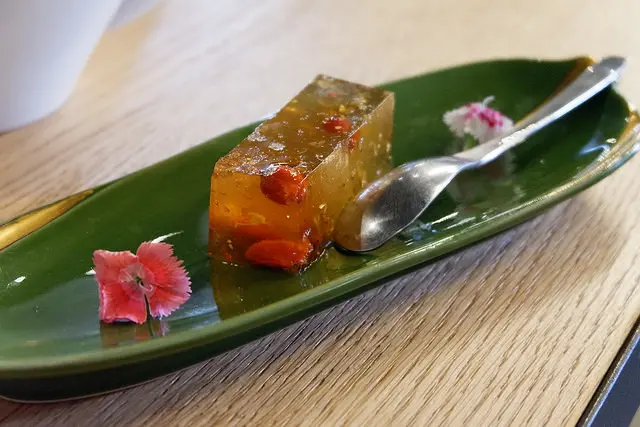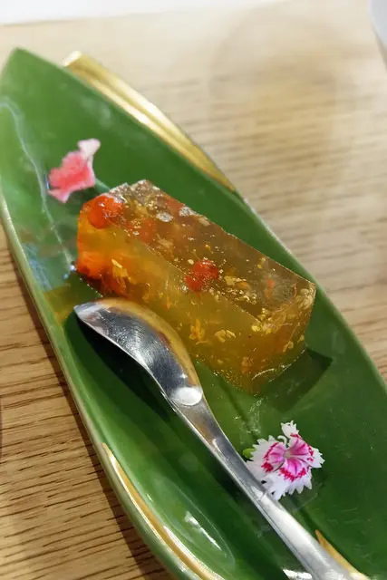 桂花金凍,像這樣的中式甜點我反而喜歡,桂花啦蓮子啦或者銀耳這類的我都喜歡,淡淡幽雅清香,夏日裡吃起來很舒服