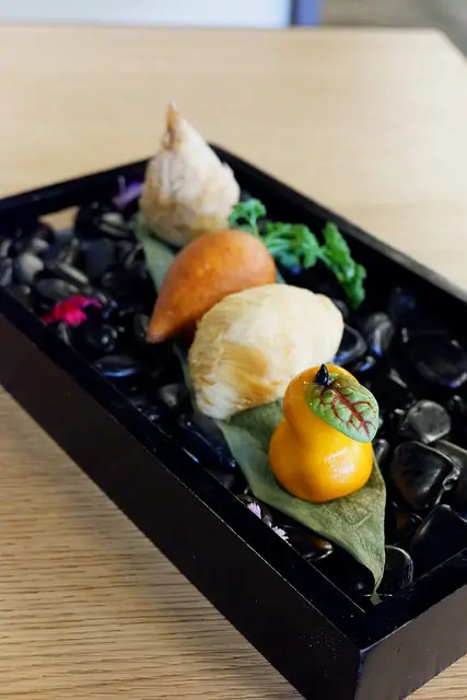 但這個春日午茶友人一約我立馬說好,每次吃港點都要找個三四個人來才覺得可以點到菜,這個春日午茶只要一個人就可以享用的幸福時光,每一種港點都只有一顆,一次可以吃到很多種口味,滿足這個也想吃那個也想吃的我