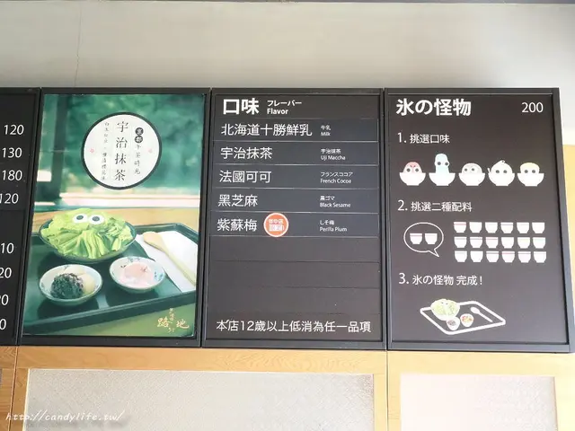 點選怪物冰的朋友選完口味後可在自行挑選兩種配料,選擇性蠻多的,一眼望去大概有20幾種配料呢~好險糖糖今天沒有要吃怪物冰,不然光是這邊的配料糖糖就會挑很久,每一種都很想加