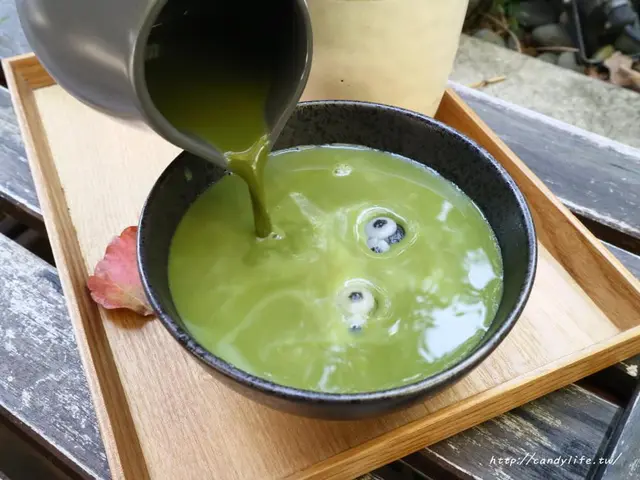 糖糖先倒半碗,抹茶湯是熱的,記得要趕快喝,因為這種天氣冷的很快,喝的時候記得先攪拌一下,把紅豆泥攪散,讓紅豆的香甜融入抹茶湯中,喝起來更有層次感