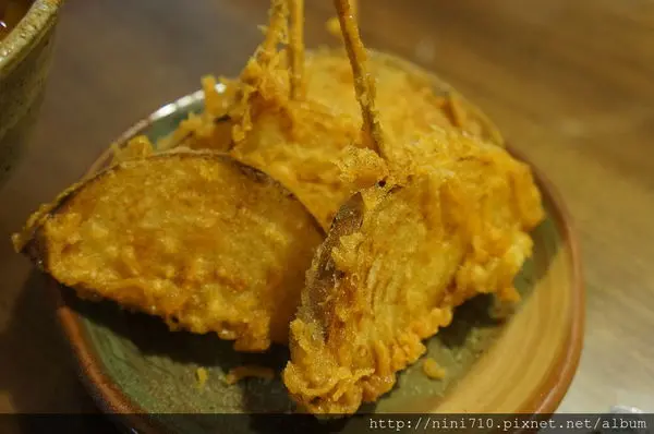 喜歡吃洋蔥的我點了炸洋蔥,早知道可以不用點,因為炸蝦烏龍麵裡就有炸蔬菜,裡頭就有洋蔥了,炸過的洋蔥軟透了,甜到不行,在灑上一大堆的七味粉,太過癮了