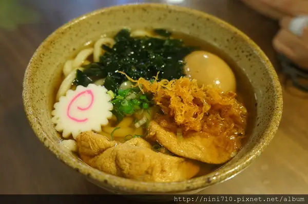 綜合烏龍麵,顧名思義,就是通通都有了,有糖心蛋、豆皮、魚板、海帶芽與蛋酥,麵體Q彈極了,原本以為這個價位我吃到的烏龍麵會是台灣魯味常用的那種等級軟趴趴的烏龍麵,沒想到老闆的用心讓我驚訝,有手打烏龍麵那種FU,而且既使放了一下下也不會過於軟爛,依然彈性十足,湯頭也很美味,唯獨豆皮我喜歡吃更甜膩一點的那種,這裡的比較不甜,一碗90元不貴耶!