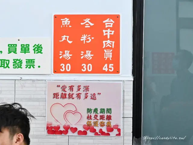 台中肉員販售的品項很簡單,就只有肉員、冬粉湯跟魚丸湯,還有隱藏版的綜合湯,就是魚丸冬粉通通有