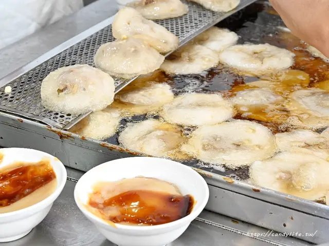 台中肉員的肉圓都是採用低溫油泡的方式,接著一顆顆裝進碗裡,再淋上招牌醬汁,看起來是不是相當可口呀