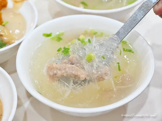 台中肉員隱藏版的綜合湯,裡頭有冬粉、肉羹及魚丸,湯頭偏清淡,冬粉是糖糖愛的那種,入口即爛,肉羹比較小塊,魚丸裡頭加了胡椒,整體胡椒感偏重