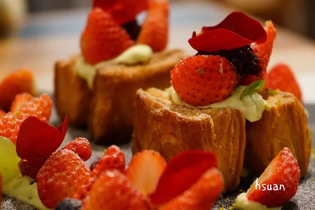 有點偏甜 所以要跟著下面的覆盆子奶油餡一起入口