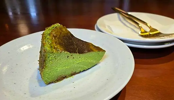 小山園抹茶乳酪蛋糕:梅子最愛這一味了,淺嚐幾口,味蕾裡滿滿都是濃郁抹茶的香味以及奶油乳酪,搭配無糖冰手沖咖啡好搭啊…一個人獨享,哈