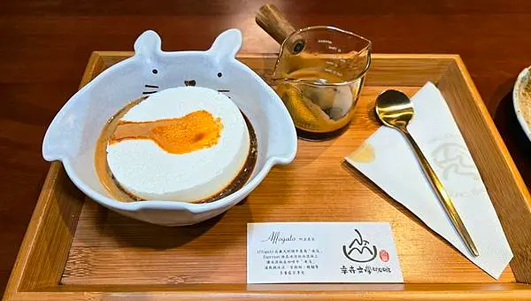 阿法其朵:可愛盤子裡,是香草冰淇淋,店員還會親切介紹如何品嚐的小撇步,把濃縮咖啡慢慢倒,一開始不要太多,先倒一半,在倒濃縮咖啡時,那畫面好療癒。