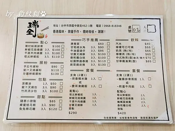 兩次吃下來的心得,阿貓覺得瑞全港式點心店適合小食,想吃飽的人可能不易滿足願望,主要是餐點與飲料的品項偏少。價格不貴,但我不會說它CP值高,分量精巧,手藝有一定水準。網路評價有褒有貶,人氣居高不下,但看個人需求喜好。對我這獨行俠來說真的方便,想吃港點不用費心思揪人約時間。