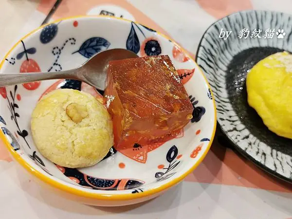 應該是蜂蜜桂花糕與小餅乾,蜂蜜桂花糕淡淡的花香好清爽,小餅乾甜而不膩口。