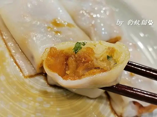 包入有厚度的蜜汁叉燒,香氣十足。整體吃起來很清爽,桌上有醬油可以調整鹹度,這醬油不會死鹹,淋上腸粉再享受,風味更棒!