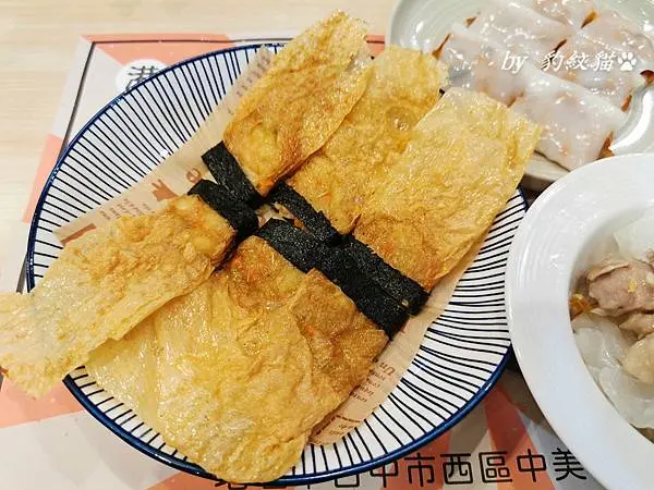 原本要點的是松露野菌春捲,吃的時候都沒聞到松露的氣味,一直到寫文時才發現,不是店家送錯餐,就是阿貓自己畫錯單,吃到紫菜腐皮捲。隨餐附贈的醬汁多了點酸香,讓油炸製作的紫菜腐皮捲嚐起來不會顯油膩。