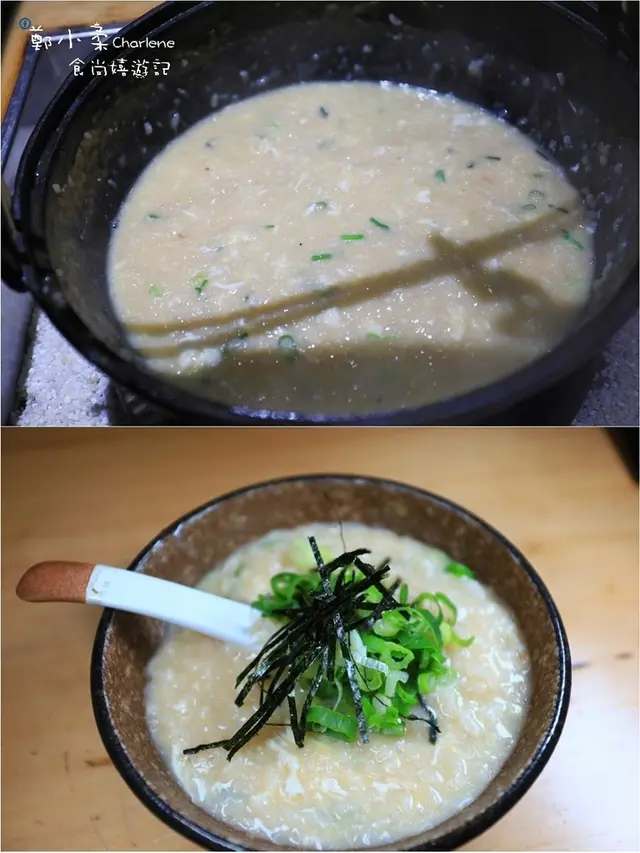青蔥等,烹煮成終極美味-雜炊,蛋花細密鬆軟,米粒軟綿,