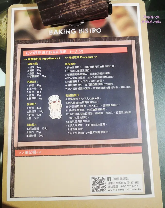 一來的時候老師已經把材料分裝好了,食譜也擺放好(但其實我都沒什麼看食譜,因為聽老師教比較仔細XD)