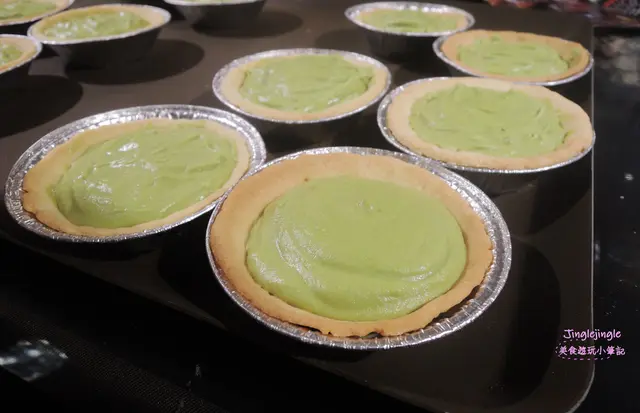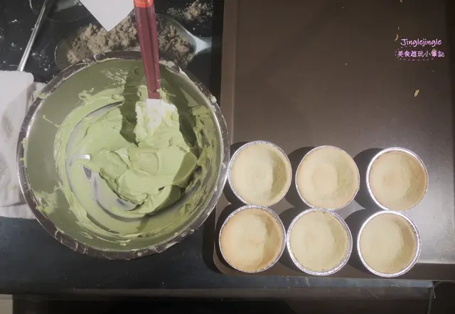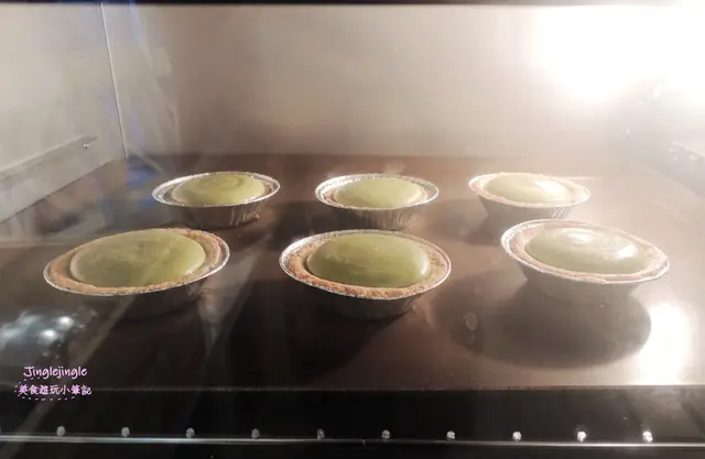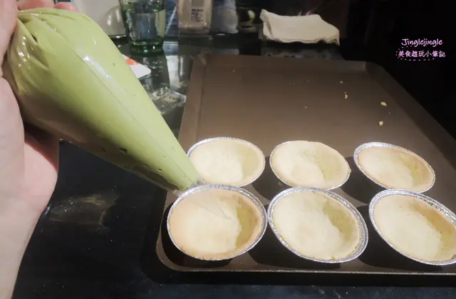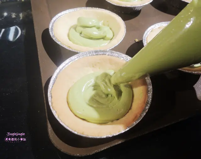 我們在擠餡料的同時,老師的抹茶乳酪塔已經在烤箱裡面囉~!!!