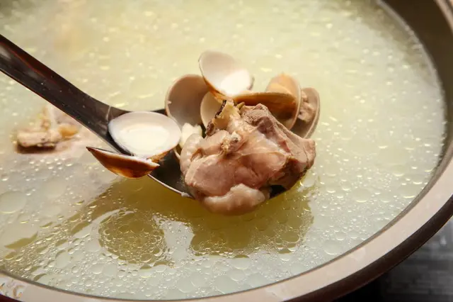 蒜頭蛤仔雞一上桌,這蒜頭蛤仔雞用料超實在!白色的湯底不斷的飄出濃郁的蒜香,隨手一撈,就是滿滿的蒜頭跟蛤仔