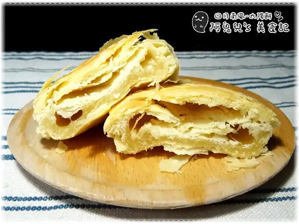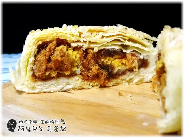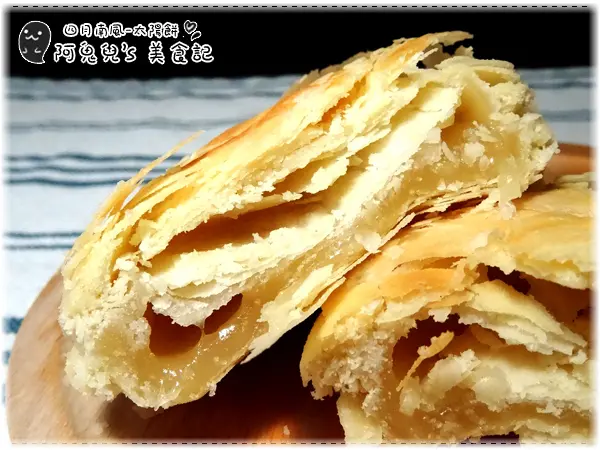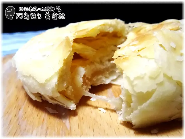 仔細一看,四月南風的太陽餅內餡是厚厚的一層,也難怪會牽絲了~