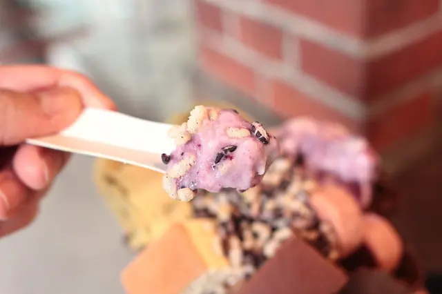 Toppings方面,比較愛紫米蕎麥,乳酪蛋糕及升級聖代乳酪蛋糕(朱古力口味) ,紫米蕎麥配雪糕很夾,吃下多了脆脆的口感,推介。