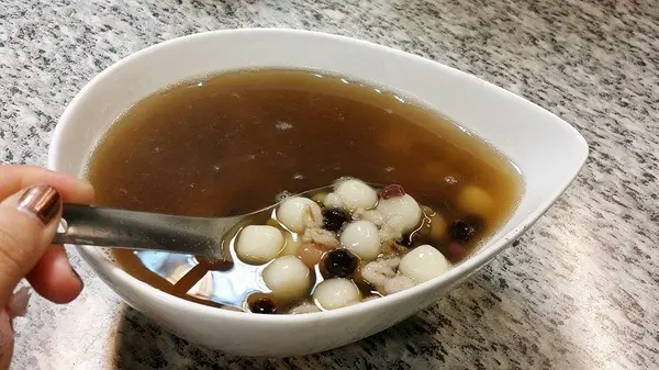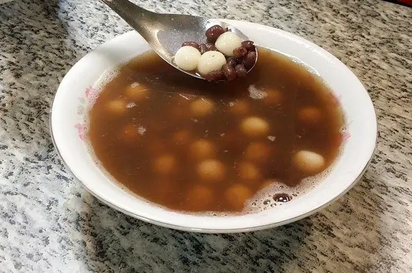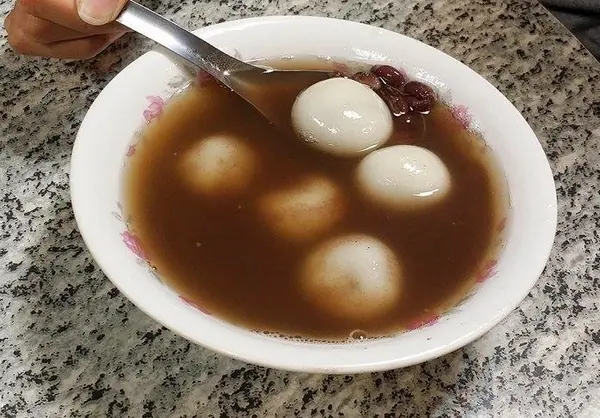 我個人比較喜歡小湯圓我很喜歡他們家的湯圓,簡單、嫩嫩的比外面賣的紅白小湯圓再小一點點,吃起來比較不會膩甜湯部分甜度不會很高,我喜歡 綜合的料滿多的,珍珠、紅豆、花豆、薏仁、綠豆所有願望一次滿足 紅豆湯小湯圓(35元)