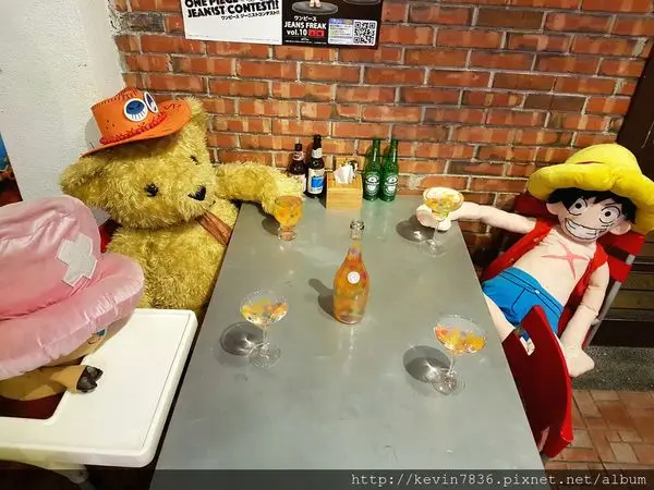 一打開門,哇!海賊王就在門口迎接你,梅子馬上被它們吸引了,當然,跟它們合拍了幾張有趣的照片,就說吧!在這裡,簡直就