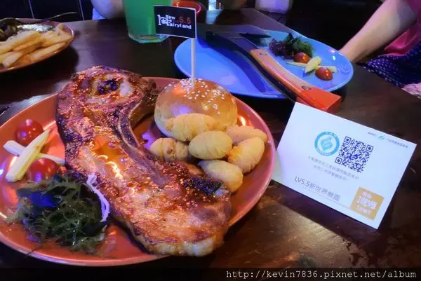 看看這豬排的肉質, 一切封汁鎖在肉裡面,這醬料口感調得竟然不會太鹹,老爺說:吃這戰斧香豬排的口感,很像夯肉(烤肉)