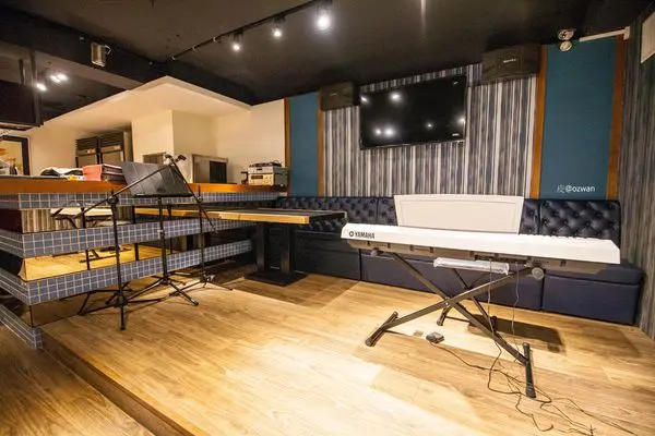 電子琴、麥克風架,未來還要放置一組爵士鼓,