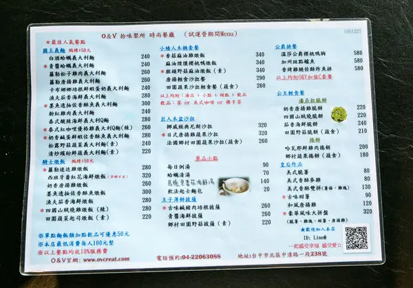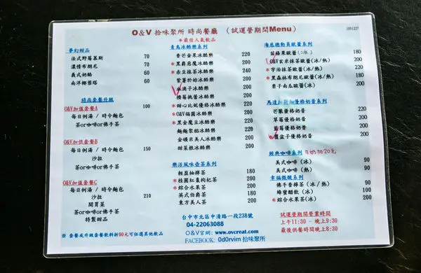 雙面彩色列印的護貝MENU,感覺可以設計的更有創意一些。
