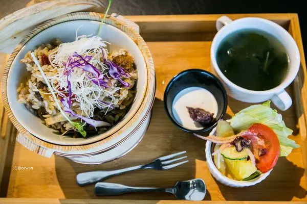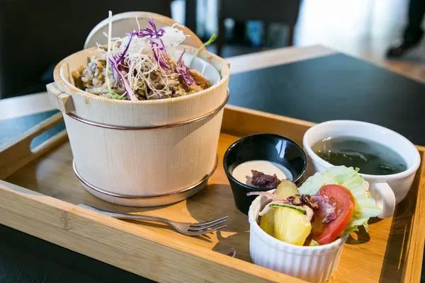 木桶飯是重頭戲,在很新的木桶裡面放了一個碗,食材不會直接接觸到木桶,