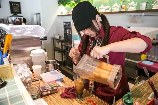 因為不加冰沙粉,所以融化的速度會比較快,待我們用完餐才開始製作。