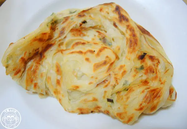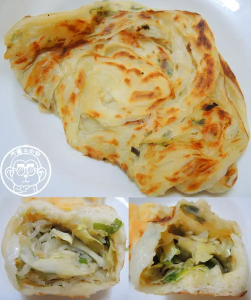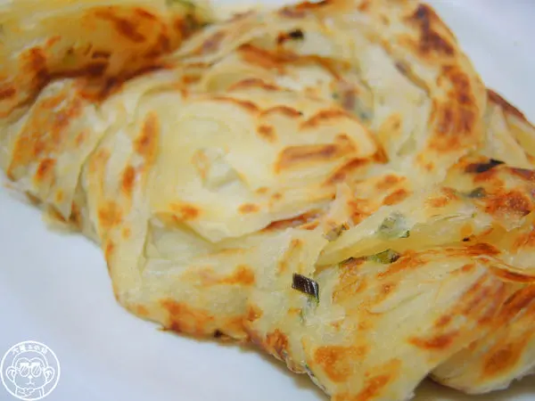 表皮煎得脆脆的,裡面層層堆疊,咀嚼可以嚐到蔥的鹹香與麵粉的甘香
