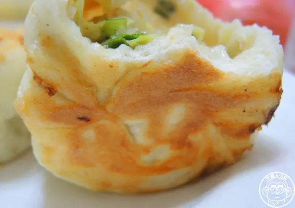 除了底部以外,其它的麵皮擀得薄,外皮還看的到部分餡料