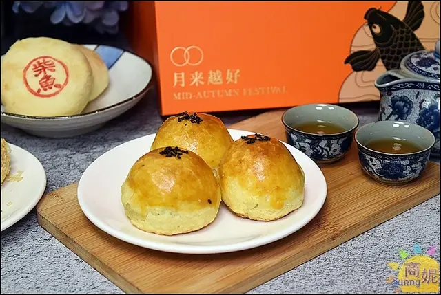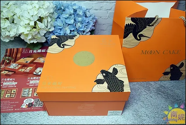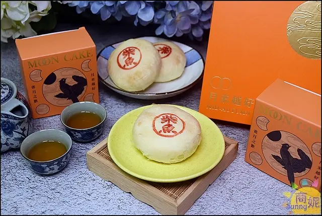 打開橘色包裝盒,裡面是傳統中式月餅,上頭還蓋了柴魚兩字。