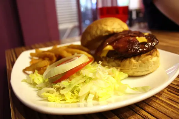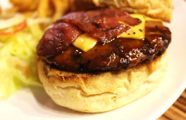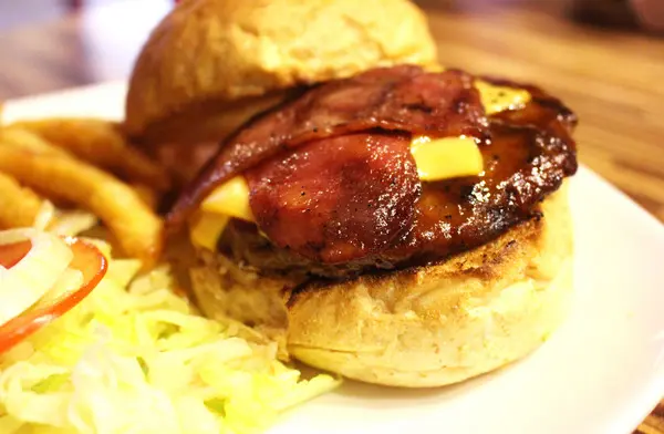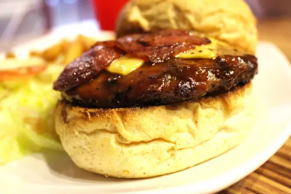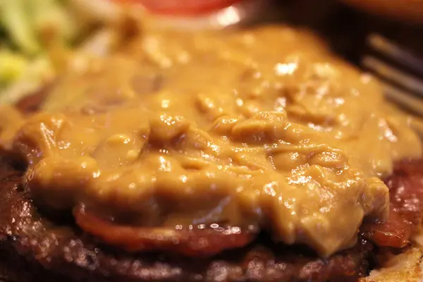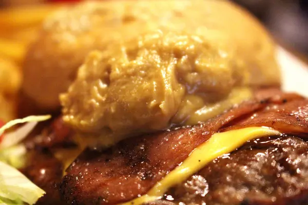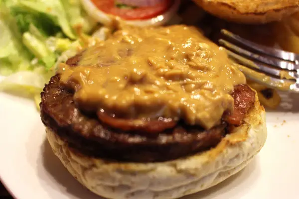 花生醬搭配著培根起司和會噴汁的牛肉意外的match