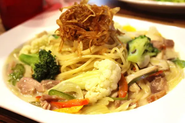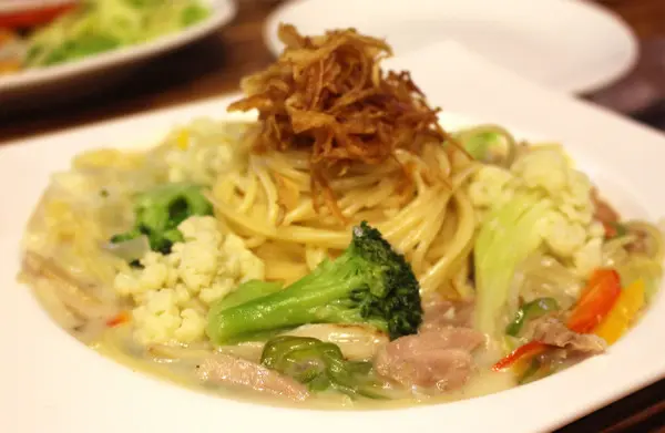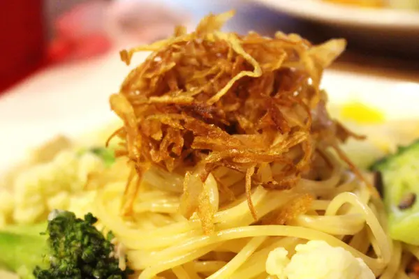 上面放著炸洋蔥絲外觀看起來像蔥仔酥