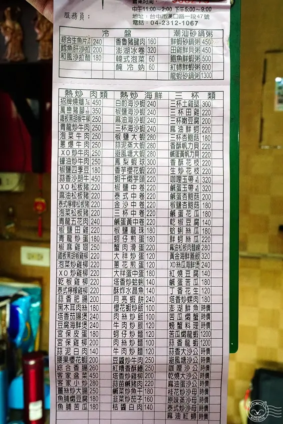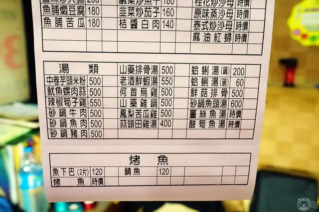 價位平實範圍很廣,熱炒類從100多元到1千多元的活海鮮都有,可以自己控制預算。