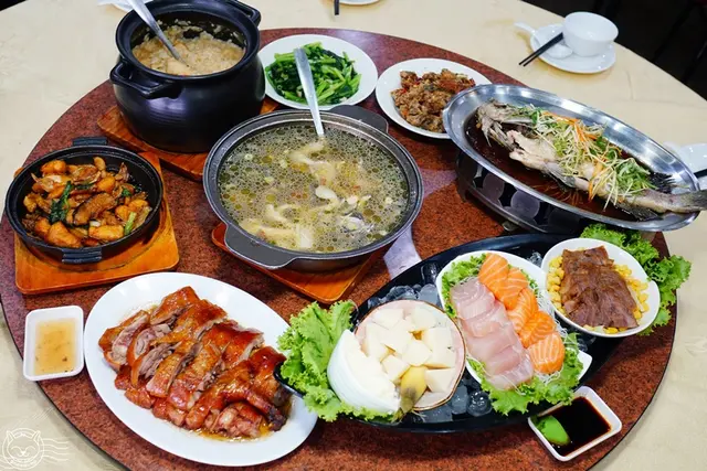 其中燒鵝、清蒸活魚、鮮蝦鮑魚粥、生魚片、紅燒鰻、鮮菇雞湯等通通有,光看就讓人食指大動,尼縮縮~怎麼能不來吃一波呢!d(d'∀')