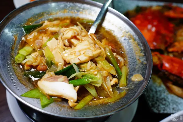 原因無他,這盤桂花醬炒沙公的調味實在太好吃,甜中帶鹹,鹹中帶香,香中帶了一點甘味,讓星羽捧著殼速到一個天荒地老,幾乎忘了沙公肉的存在。