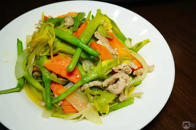 炒青菜沒有固定品項,看今天什麼青菜最新鮮就炒什麼,最簡單的調味,蒜頭、鹽巴,爽脆好食。