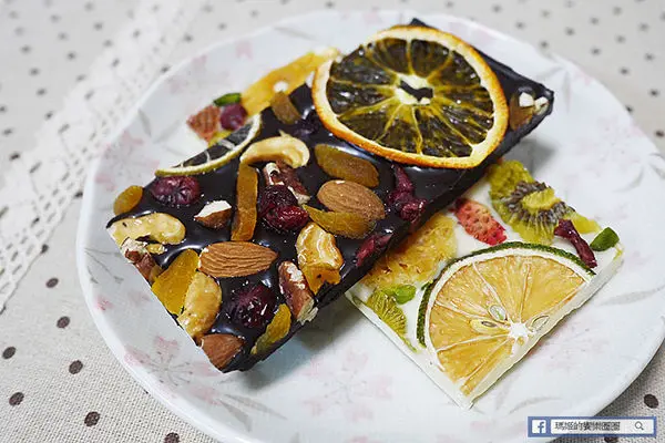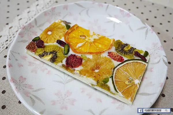 白巧克力磚上頭有豐富的水果乾加入其中,中和了整體的口感,我尤其喜歡那鳯梨果乾,咬下去散發出水果的酸甜味,還有不會很乾的果肉口感,好吃極了!