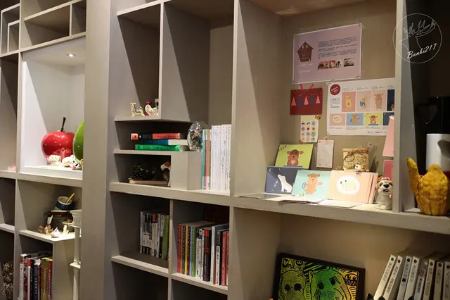 推開門後進入店內的右側為放置許多書籍以及一些販售用的明信片等創作。
