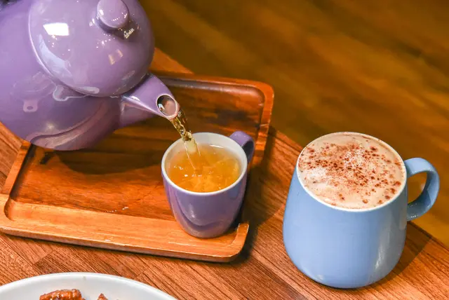 馬鞭草輕樣舒緩茶香氣濃郁,是一款沒有咖啡因的熱茶,卡布奇諾滑順細緻,咖啡香滿鮮明的。