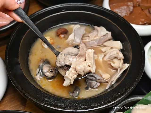 尚石苑新推出的粵式胡椒豬肚雞鍋,湯頭採用雞骨、豚骨、大量蔬果及研磨白胡椒下去燉煮,湯頭濃厚,入口帶有胡椒的辛辣味,裡頭有著大量的豬肚及烏骨雞肉,豬肚Q中帶脆,不會潤潤的不好咬,也不會有腥味,烏骨雞肉是採用溫體烏骨雞肉,大塊軟嫩,吸附著胡椒湯頭,吃起來帶有迷人的胡椒香