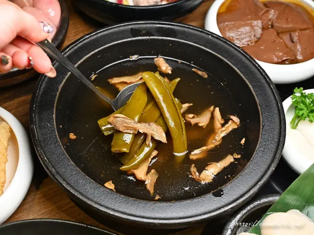 尚石苑的人氣湯頭,採用醃製剝皮辣椒及老薑片,搭配高湯下去熬煮, 讓湯頭喝起來帶有剝皮辣椒的甘甜滋味