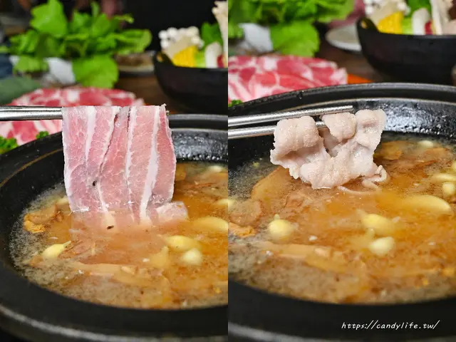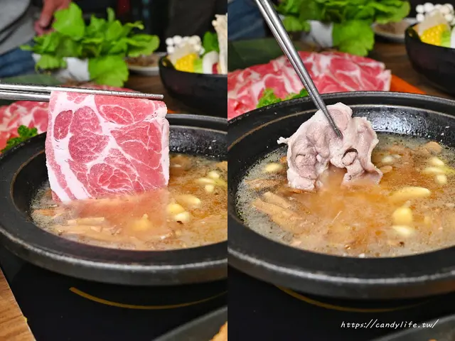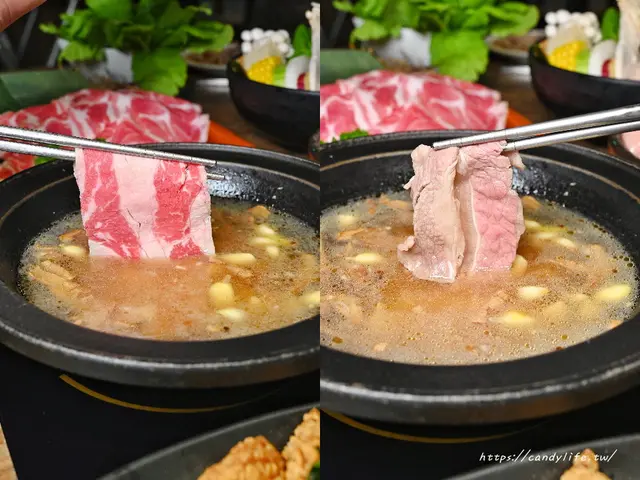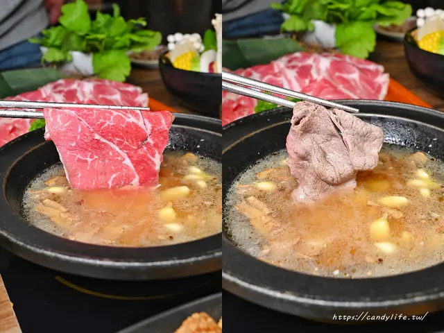 板腱牛含油量較低,油花沒有像雪花牛或牛小排來的豐富,建議涮至5-6分熟度就好,肉質鮮嫩多汁,牛肉香氣十足,帶有些許嫩筋